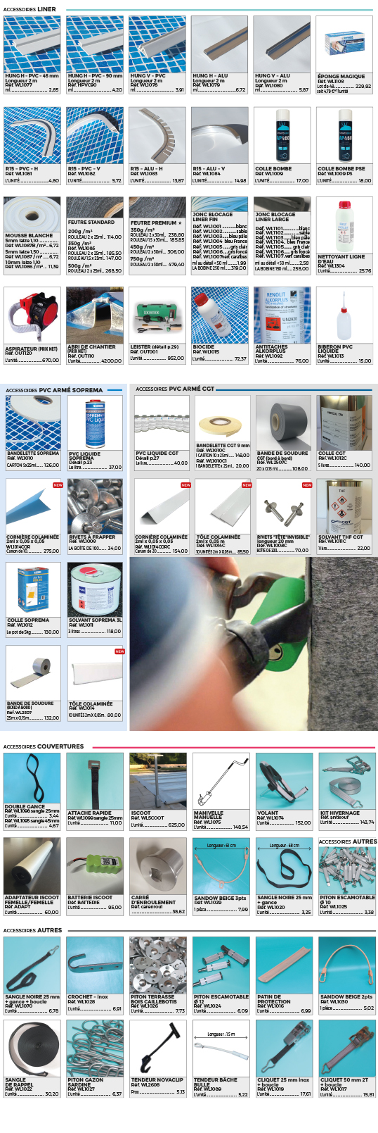 Liner, couverture et équipement de piscine